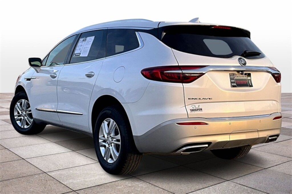 White Frost Tricoat 2021 Buick Enclave Essence FWD 3.6L V6 SIDI VVT 3rd Row Seating, 4G WiFi Hotspot Telematics, 8" Color Touchscreen, Android Auto, Apple Carplay, Auto LED Headlights, Backup Camera, Blind Spot Monitoring, Bluetooth w/ Streaming Audio, Bose High End Sound Package, Lane Change Alert, Leather Seats, Multi Zone Climate Control, Parking Sensors, Power Mirror Package, Power Package, Preferred Equipment Package, Premium Sound Package, Push Button Start, Rear Climate Package, Rear Cross Traffic Alert, Remote Start, Reverse Brake Assist, Reverse Sensing, Safety Package, 4D Sport Utility, 3.6L V6 SIDI VVT, 9-Speed Automatic, FWD, 120-Volt Power Outlet, 18" Painted Aluminum Wheels, 3rd Row All-Weather Floor Liner (LPO), 3rd row seats: split-bench, 4-Wheel Disc Brakes, 6-Speaker Audio System Feature, 7-Passenger Seating, ABS brakes, Apple CarPlay/Android Auto, Auto-dimming door mirrors, Auto-dimming Rear-View mirror, Automatic temperature control, Bose Performance-Enhanced 10-Speaker System, Brake assist, Bumpers: body-color, Compass, Delay-off headlights, Electronic Stability Control, Emergency communication system: OnStar and Buick connected services capable, Four wheel independent suspension, Front Bucket Seats, Front Center Armrest, Front dual zone A/C, Fully automatic headlights, Garage door transmitter, Heated door mirrors, Heated Driver & Front Passenger Seats, Heated front seats, Illuminated entry, Integrated Cargo Liner (LPO), Leather steering wheel, Low tire pressure warning, Outside temperature display, Overhead console, Panic alarm, Perforated Leather-Appointed Seat Trim, Power door mirrors, Power Driver Lumbar Control Seat Adjuster, Power driver seat, Power Liftgate, Power Passenger Lumbar Control Seat Adjuster, Power steering, Power windows, Preferred Equipment Group 1SL, Premium audio system: Buick Infotainment System, Radio data system, Radio: Buick Infotainment Sys AM/FM Stereo w/Nav, Radio: Buick Infotainment System AM/FM Stereo, Rear air conditioning, Rear Parking Sensors, Rear window wiper, Remote keyless entry, Roof rack: rails only, Security system, SiriusXM w/360L, Sound & Sites Package, Speed control, Speed-sensing steering, Spoiler, Steering wheel mounted audio controls, Telescoping steering wheel, Tilt steering wheel, Traction control, Trip computer, Turn signal indicator mirrors, Variably intermittent wipers.