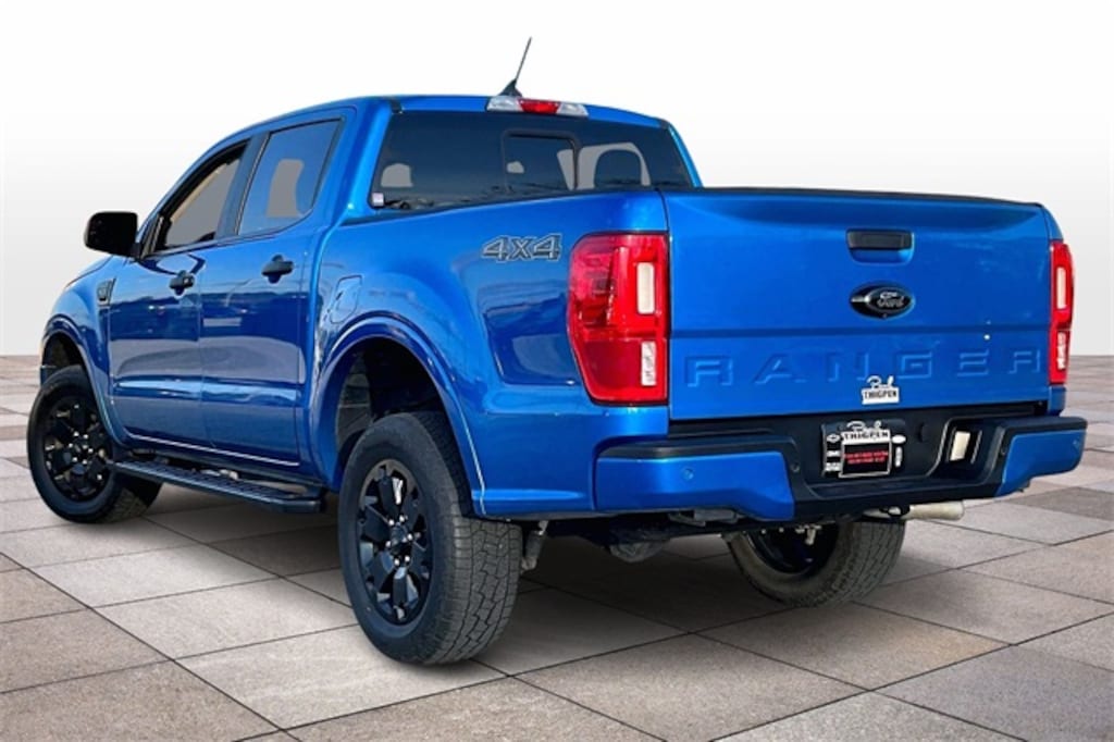 Blue Metallic 2022 Ford Ranger XLT 4WD 4WD EcoBoost 2.3L I4 GTDi DOHC Turbocharged VCT 4G WiFi Hotspot Telematics, 8" Color Touchscreen, Adaptive Cruise Control, Auto Emergency Braking, Backup Camera, Blind Spot Monitoring, BLIS Blind Spot Info, Bluetooth w/ Streaming Audio, Front & Rear Park Assist, Hill Start Assist, Lane Keeping System, Parking Sensors, Power Mirror Package, Power Package, Power Sliding Rear Window, Pre Collision w/ AEB, Remote Start, Reverse Brake Assist, Reverse Sensing, Tow Package, Trailer Package, XLT Package, 4D Crew Cab, EcoBoost 2.3L I4 GTDi DOHC Turbocharged VCT, 10-Speed Automatic, 4WD, 110V AC Power Outlet, 4-Wheel Disc Brakes, 5" Rectangular Black Running Boards, 6 Speakers, ABS brakes, Adaptive Cruise Control, AM/FM radio: SiriusXM, Auto High-beam Headlights, Auto Start-Stop Technology, Auto-Dimming Rear-View Mirror, Automatic temperature control, Black Appearance Package, Black Fender Vent Surround, Black Mesh Grille w/Black Painted Surround, Black Mesh Grille w/Magnetic Painted Surround, Black Wheel-Lip Molding, Body-Color Front & Rear Bumpers, Brake assist, Compass, Dark Box Decal, Delay-off headlights, Electronic Stability Control, Emergency communication system: SYNC 3 911 Assist, Equipment Group 302A High, Exterior Parking Camera Rear, Forward Sensing System, Front Bucket Seats, Front Center Armrest, Front dual zone A/C, Front fog lights, Front Premium Cloth Bucket Seats, Front wheel independent suspension, Fully automatic headlights, Hard Folding Tonneau Box Cover, Heated Front Seats, Illuminated entry, Leather-Wrapped Shifter, Leather-Wrapped Steering Wheel, Low tire pressure warning, Magnetic Painted Fender Vent Surround, Magnetic Painted Front & Rear Bumper, Manual-Sliding Rear-Window, Navigation, Navigation System, Outside temperature display, Overhead console, Panic alarm, Power door mirrors, Power Mirrors w/Heated Glass, Power steering, Power windows, Rear seat center armrest, Rear step bumper, Remote keyless entry, Remote Start, Reverse Sensing System, Security system, SiriusXM Satellite Radio, Speed-sensing steering, Sport Appearance Package, Sport Box Decal, Steering wheel mounted audio controls, SYNC 3/Apple CarPlay/Android Auto, Technology Package, Telescoping steering wheel, Tilt steering wheel, Tough Bed Spray-In Bedliner, Traction control, Tray Style Floor Liner, Trip computer, Variably intermittent wipers, Wheels: 18" Black Painted Aluminum.