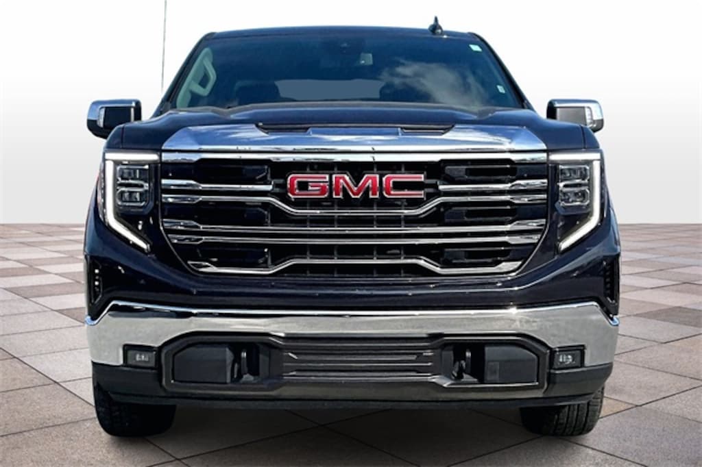Titanium Rush Metallic 2025 GMC Sierra 1500 SLT RWD EcoTec3 5.3L V8 12.3" HD Color Driver Cluster, 13.4" HD Color Touchscreen, 4G WiFi Hotspot Telematics, Android Auto, Apple Carplay, Auto LED Headlights, Backup Camera, Bluetooth w/ Streaming Audio, Cold Weather Package, Following Distance Indicator, Forward Collision Alert, Forward Pedestrian Braking, Lane Departure System, Lane Keeping System, Leather Seats, LED Fog Lights, Memory Package, Power Mirror Package, Power Package, Preferred Equipment Package, Push Button Start, Remote Start, SLT Package, Tour Package, Trailer Package, 4D Crew Cab, EcoTec3 5.3L V8, 10-Speed Automatic, RWD, 10-Way Power Driver Seat Adjuster w/Lumbar, 10-Way Power Passenger Seat Adjuster w/Lumbar, 120-Volt Bed Mounted Power Outlet, 120-Volt Interior Power Outlet, 170 Amp Alternator, 2 Charge/Data USB Ports, 2 Type-C Charge-Only Rear USB Ports, 4-Wheel Disc Brakes, 6-Speaker Audio System Feature, ABS brakes, Apple CarPlay/Android Auto, Auto High-beam Headlights, Auto-dimming door mirrors, Auto-dimming Rear-View mirror, Auto-Locking Rear Differential, Automatic Emergency Braking, Automatic temperature control, Auxiliary External Transmission Oil Cooler, Brake assist, Chrome Header & Chrome Grille Insert Bars, Color-Keyed Carpeting Floor Covering, Compass, Deep-Tinted Glass, Delay-off headlights, Driver Memory, Electric Rear-Window Defogger, Electronic Stability Control, Following Distance Indicator, Forward Collision Alert, Front 40/20/40 Split-Bench Seat, Front Center Armrest w/Storage, Front dual zone A/C, Front fog lights, Front Frame-Mounted Black Recovery Hooks, Front Pedestrian Braking, Front Rain-Sensing Wipers, Front wheel independent suspension, Fully automatic headlights, HD Rear Vision Camera, Heated door mirrors, Heated Driver & Front Outboard Passenger Seating, Heated steering wheel, Hitch Guidance, Illuminated entry, Integrated Trailer Brake Controller, Keyless Open & Start, Lane Keep Assist w/Lane Departure Warning, LED Cargo Area Lighting, Low tire pressure warning, Manual Tilt-Wheel & Telescoping Steering Column, Memory seat, OnStar Services Capable, Outside temperature display, Overhead console, Panic alarm, Perf Leather-Appointed Front Outboard Seat Trim, Perimeter Lighting, Power Door Locks, Power door mirrors, Power Front Passenger Windows w/Express Up/Down, Power Front Windows w/Driver Express Up/Down, Power passenger seat, Power Rear Windows w/Express Down, Preferred Equipment Group 4SA, Push Button Start, Radio data system, Radio: Premium GMC Infotainment Audio System, Rain sensing wipers, Rear seat center armrest, Rear step bumper, Rear Wheelhouse Liners, Remote keyless entry, Remote Vehicle Starter System, Security system, SiriusXM w/360L Trial Subscription, Speed control, Speed-sensing steering, Split folding rear seat, Steering Wheel Audio Controls, Steering wheel mounted audio controls, Telescoping steering wheel, Theft Deterrent System (Unauthorized Entry), Tilt steering wheel, Traction control, Trailering Package, Trip computer, Wheels: 18" x 8.5" 6-Spoke Machined Aluminum, Wi-Fi Hotspot Capable, Wireless Apple CarPlay/Wireless Android Auto.