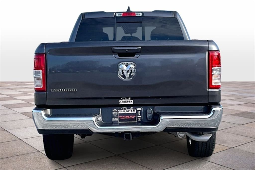 Granite Crystal Metallic Clearcoat 2022 Ram 1500 Big Horn/Lone Star RWD 3.6L V6 24V VVT 8" Color Touchscreen, Android Auto, Apple Carplay, Backup Camera, Bluetooth w/ Streaming Audio, Hill Start Assist, Power Mirror Package, Power Package, Power Sliding Rear Window, Preferred Equipment Package, Push Button Start, Remote Start, 4D Quad Cab, 3.6L V6 24V VVT, 8-Speed Automatic, RWD, 3 Rear Seat Head Restraints, 4 Way Front Headrests, 4-Wheel Disc Brakes, 48V Belt Starter Generator, 4G LTE Wi-Fi Hot Spot, 8.4" Touchscreen Display, ABS brakes, Air Conditioning, Apple CarPlay, Auto-Dimming Exterior Driver Mirror, Auto-Dimming Rear-View Mirror, Big Horn Badge, Big Horn Level 1 Equipment Group, Black Exterior Mirrors, Black Premium Power Mirrors, Brake assist, Class IV Receiver Hitch, Compass, Connected Services Delete Credit, Connectivity - US/Canada, Convex Wide-Angle Mirror Insert, Delay-off headlights, Electronic Stability Control, Emergency communication system: SiriusXM Guardian, Exterior Mirrors Courtesy Lamps, Exterior Mirrors w/Heating Element, Exterior Mirrors w/Supplemental Signals, For Details, Visit DriveUconnect.com, For More Info, Call 800-643-2112, Front Center Armrest w/Storage, Front fog lights, Front Seat Back Map Pockets, Front wheel independent suspension, Fully automatic headlights, Global Telematics Box Module (TBM), Glove Box Lamp, Google Android Auto, GPS Antenna Input, Heated door mirrors, Illuminated entry, Integrated Center Stack Radio, Integrated Voice Command w/Bluetooth, Leather steering wheel, Low tire pressure warning, Outside temperature display, Overhead console, Panic alarm, ParkView Rear Back-Up Camera, Power 2-Way Driver Lumbar Adjust, Power 8-Way Driver Seat, Power Adjustable Pedals, Power door mirrors, Power-Folding Mirrors, Quick Order Package 23Z Big Horn, Radio data system, Radio: Uconnect 5 W w/8.4" Display, Rear Dome w/On/Off Switch Lamp, Rear Power Sliding Window, Rear seat center armrest, Rear step bumper, Rear Window Defroster, Remote keyless entry, SiriusXM Radio Service, SiriusXM Satellite Radio, Speed control, Steering wheel mounted audio controls, Sun Visors w/Illuminated Vanity Mirrors, Telescoping steering wheel, Tilt steering wheel, Traction control, Trip computer, Universal Garage Door Opener, USB Host Flip, Variably intermittent wipers, Wheels: 20" x 9" Aluminum Chrome Clad (WRK).