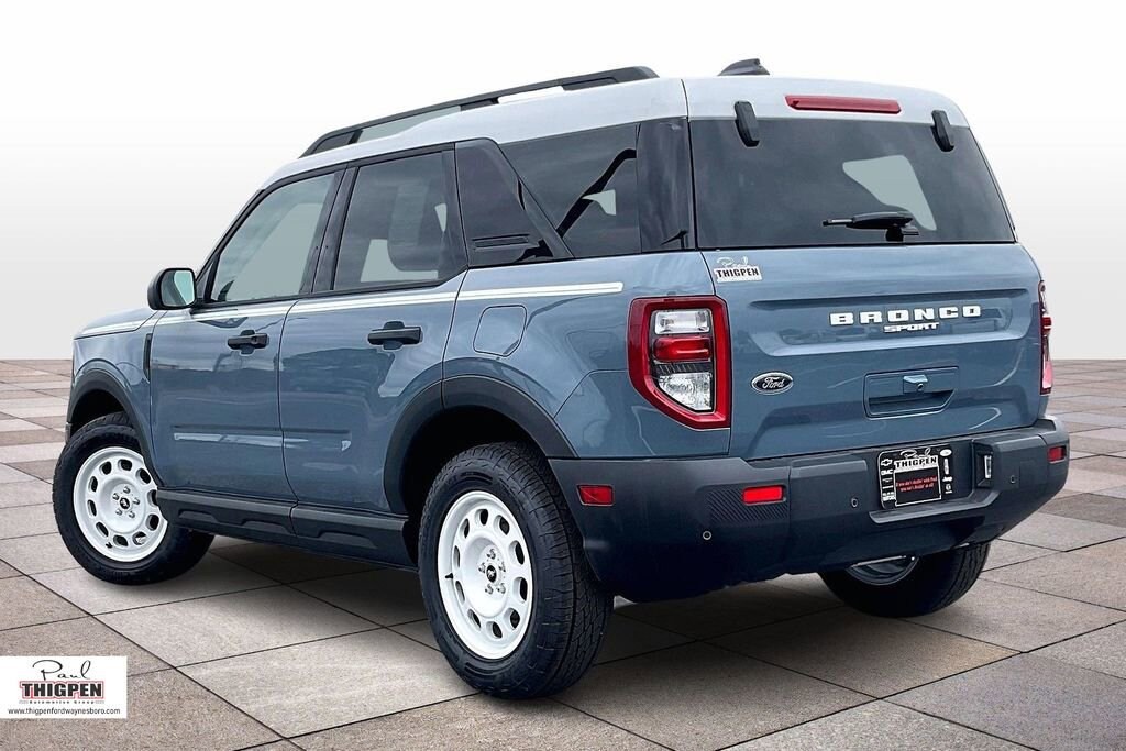 Azure Gray Metallic Tri-Coat 2025 Ford Bronco Sport Heritage 4WD 8-Speed Automatic 1.5L EcoBoost 4-Wheel Disc Brakes, 6 Speakers, ABS brakes, Air Conditioning, Alloy wheels, AM/FM radio: SiriusXM, AM/FM Stereo, Auto High-beam Headlights, Automatic temperature control, Brake assist, Cargo Management System (Shelf/Divider/Table), Compass, Delay-off headlights, Driver door bin, Driver vanity mirror, Dual front impact airbags, Dual front side impact airbags, Electronic Stability Control, Emergency communication system: SYNC 4 911 Assist, Equipment Group 250A, Four wheel independent suspension, Front anti-roll bar, Front Bucket Seats, Front Center Armrest, Front Driver/Passenger Seat Back Map Pockets, Front License Plate Bracket, Front reading lights, Fully automatic headlights, Heated door mirrors, Illuminated entry, Knee airbag, Low tire pressure warning, Occupant sensing airbag, Outside temperature display, Overhead airbag, Overhead console, Panic alarm, Passenger door bin, Passenger vanity mirror, Plaid Cloth Front Bucket Seats, Power door mirrors, Power steering, Power windows, Radio data system, Rear anti-roll bar, Rear Parking Sensors, Rear reading lights, Rear seat center armrest, Rear window defroster, Rear window wiper, Remote keyless entry, Security system, SiriusXM, Speed control, Speed-sensing steering, Speed-Sensitive Wipers, Split folding rear seat, Steering wheel mounted audio controls, SYNC 4 w/Enhanced Voice Recognition, Tachometer, Telescoping steering wheel, Tilt steering wheel, Traction control, Trip computer, Variably intermittent wipers, Wheels: 17" Oxford White-Painted Aluminum.
