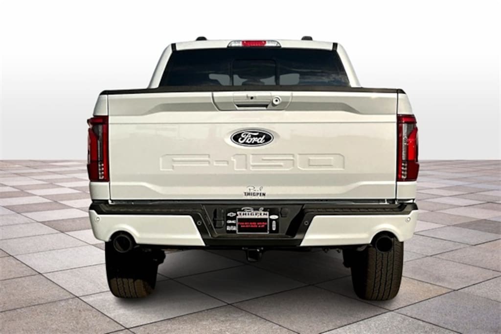 Space White Metallic 2025 Ford F-150 Lariat 4WD 10-Speed Automatic 5.0L V8 Equipment Group 501A Mid (6" Angular Bright Anodized Step Bar, Illuminated Driver & Passenger Visors, Power-Sliding Rear Window, and Wheels: 20" Chrome-Like PVD), FX4 Off-Road Package (4x4 FX4 Off-Road Bodyside Decal, Electronic Locking w/3.31 Axle Ratio, Hill Descent Control, Monotube Rear Shocks, Off-Road Tuned Front Shock Absorbers, Rock Crawl Mode, and Tray Style Floor Liner w/o Carpet Mats), Lariat Black Appearance Package (ActiveX Trimmed Bucket Seats (B), Black Exterior Badging, Black Grille, Black Taillamp Bezels, Body-Color Front & Rear Bumpers, Body-Color Skull Caps & Door Handles, Dark Interior Appliques, Gray Box Side Decal, and Matte Black Tailgate F-150 Decal), 4D SuperCrew, 5.0L V8, 10-Speed Automatic, 4WD, Navigation system: Connected Navigation, 4-Wheel Disc Brakes, 8 Speakers, ABS brakes, ActiveX Trimmed Bucket Seats, Adjustable pedals, Air Conditioning, Alloy wheels, AM/FM radio: SiriusXM with 360L, Auto High-beam Headlights, Auto-dimming door mirrors, Auto-dimming Rear-View mirror, Automatic temperature control, Brake assist, Bumpers: chrome, Chrome wheels, Compass, Delay-off headlights, Driver door bin, Driver vanity mirror, Dual front impact airbags, Dual front side impact airbags, Electronic Stability Control, Emergency communication system: SYNC 4 911 Assist, Front anti-roll bar, Front Bucket Seats, Front Center Armrest, Front dual zone A/C, Front fog lights, Front reading lights, Front wheel independent suspension, Fully automatic headlights, Garage door transmitter, Heated door mirrors, Heated front seats, Heated steering wheel, Illuminated entry, Low tire pressure warning, Memory seat, Occupant sensing airbag, Outside temperature display, Overhead airbag, Overhead console, Panic alarm, Passenger door bin, Passenger vanity mirror, Pedal memory, Power door mirrors, Power driver seat, Power passenger seat, Power steering, Power windows, Radio data system, Radio: B&O Sound System by Bang & Olufsen, Rain sensing wipers, Rear reading lights, Rear seat center armrest, Rear step bumper, Rear window defroster, Remote keyless entry, Security system, Speed control, Split folding rear seat, Steering wheel mounted audio controls, SYNC 4 w/Enhanced Voice Recognition, Tachometer, Telescoping steering wheel, Tilt steering wheel, Traction control, Trip computer, Turn signal indicator mirrors, Variably intermittent wipers, Ventilated front seats, Voltmeter, and Wheels: 18" Chrome-Like PVD. 12" LCD Color Touchscreen, 360-Degree Camera, Adaptive Cruise Control, Auto Emergency Braking, Auto LED Headlights, Backup Camera, Blind Spot Monitoring, BLIS Blind Spot Info, Bluetooth w/ Streaming Audio, Lane Keeping System, Lariat Package, Off Road Package