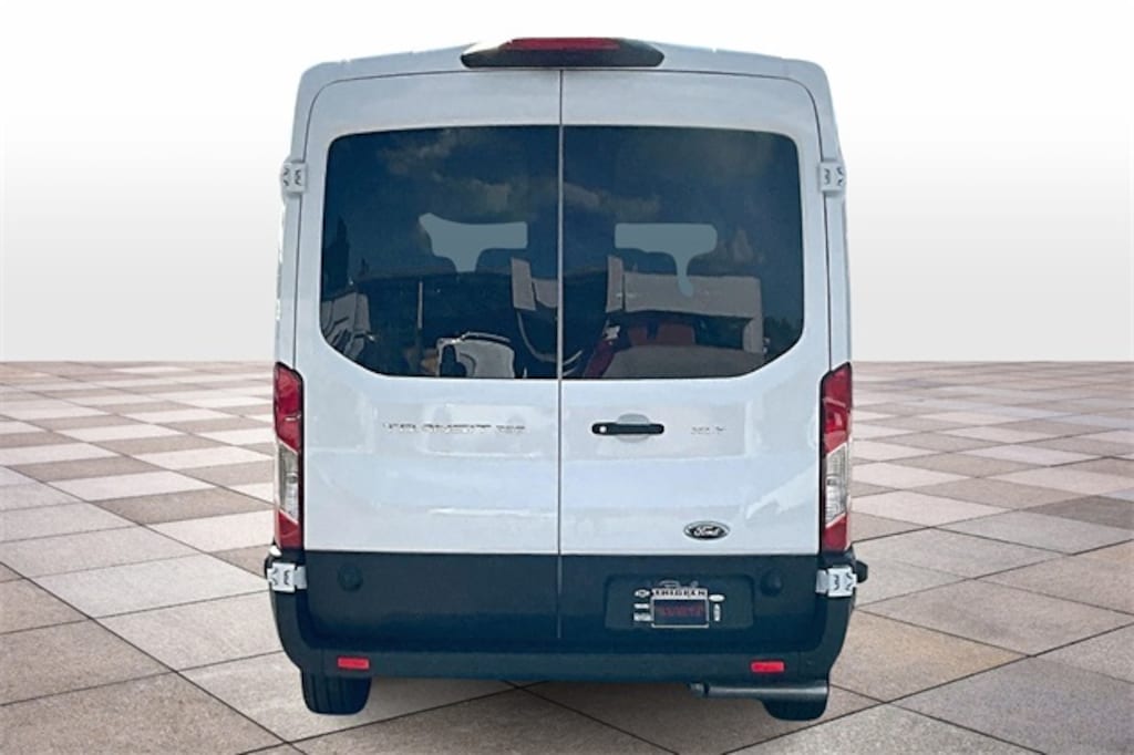 Oxford White 2025 Ford Transit-350 XLT 15-Passenger RWD 10-Speed Automatic with Overdrive 3.5L V6 Flex Fuel Order Code 302A, Passenger Van, 3.5L V6 Flex Fuel, 10-Speed Automatic with Overdrive, RWD, 15-Passenger Seats, 3.73 Limited-Slip Axle Ratio, ABS brakes, Electronic Stability Control, Heated door mirrors, Illuminated entry, Low tire pressure warning, Navigation system: Connected Navigation, Rain sensing wipers, Remote keyless entry, Traction control, 3rd row seats: split-bench, 4-Wheel Disc Brakes, 4th-Row Bench Seat, 8 Speakers, Air Conditioning, AM/FM radio, Auto High-beam Headlights, Automatic temperature control, Brake assist, Bumpers: body-color, Cloth Front Bucket Seats, Dark Palazzo Gray Cloth Bucket Seats, Delay-off headlights, Driver door bin, Driver vanity mirror, Driver's Seat Mounted Armrest, Dual front impact airbags, Dual front side impact airbags, Electronic Air Temperature Control, Emergency communication system: 911 Assist, Front anti-roll bar, Front Bucket Seats, Front Fog Lamps, Front fog lights, Front reading lights, Front Sensing System, Front wheel independent suspension, Fully automatic headlights, Large Center Console, Occupant sensing airbag, Overhead airbag, Panic alarm, Passenger door bin, Passenger seat mounted armrest, Passenger vanity mirror, Power door mirrors, Power steering, Power windows, Radio: AM/FM Stereo w/SYNC 4 & Nav, Rear air conditioning, Rear reading lights, Rear window defroster, Reverse Sensing System, Side Sensing System, Speed control, Steering wheel mounted audio controls, Tachometer, Telescoping steering wheel, Tilt steering wheel, Trip computer, Turn signal indicator mirrors, and Wheels: 16" Steel w/Full Silver Cover. 12" LCD Color Touchscreen, Auto Emergency Braking, Backup Camera, Blind Spot Monitoring, BLIS Blind Spot Info, Post Collison Braking, Power Mirror Package, Pre Collision w/ AEB, Preferred Equipment Package, Tow Package, Trailer Package, XLT Package, Pro Trailer Hitch Assist, Passenger Van, 3.5L V6 Flex Fuel, 10-Speed Automatic with Overdrive, RWD, 15-Passenger Seats, 3.73 Limited-Slip Axle Ratio, ABS brakes, Electronic Stability Control, Heated door mirrors, Illuminated entry, Low tire pressure warning, Navigation system: Connected Navigation, Order Code 302A, Rain sensing wipers, Remote keyless entry, Traction control.