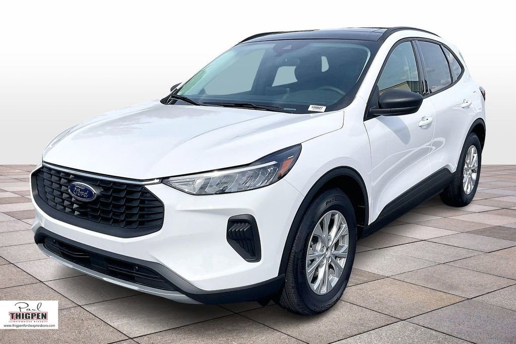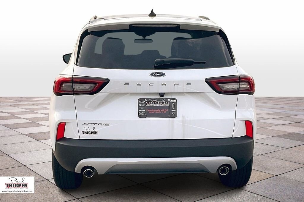 Oxford White 2026 Ford Escape Active FWD 8-Speed Automatic 1.5L EcoBoost 3.81 Axle Ratio, 4-Wheel Disc Brakes, 6 Speakers, 6-Way Manual Driver Seat, ABS brakes, Air Conditioning, Alloy wheels, AM/FM radio: SiriusXM 360L, Auto High-beam Headlights, Automatic temperature control, Brake assist, Compass, Delay-off headlights, Driver door bin, Driver vanity mirror, Dual front impact airbags, Dual front side impact airbags, Electronic Stability Control, Emergency communication system: SYNC 4 911 Assist, Equipment Group 200A, Four wheel independent suspension, Front anti-roll bar, Front Bucket Seats, Front dual zone A/C, Front License Plate Bracket, Front reading lights, Fully automatic headlights, Illuminated entry, Knee airbag, Low tire pressure warning, Occupant sensing airbag, Outside temperature display, Overhead airbag, Overhead console, Panic alarm, Passenger door bin, Passenger vanity mirror, Power door mirrors, Power Liftgate, Power steering, Power windows, Radio data system, Radio: AM/FM Stereo with SiriusXM 360L, Rear anti-roll bar, Rear reading lights, Rear window defroster, Rear window wiper, Remote keyless entry, Speed control, Speed-sensing steering, Speed-Sensitive Wipers, Split folding rear seat, Spoiler, Steering wheel mounted audio controls, Tachometer, Telescoping steering wheel, Tilt steering wheel, Traction control, Trip computer, Unique Cloth Front Bucket Seats, Variably intermittent wipers, Wheels: 17" Shadow Silver-Painted Aluminum.