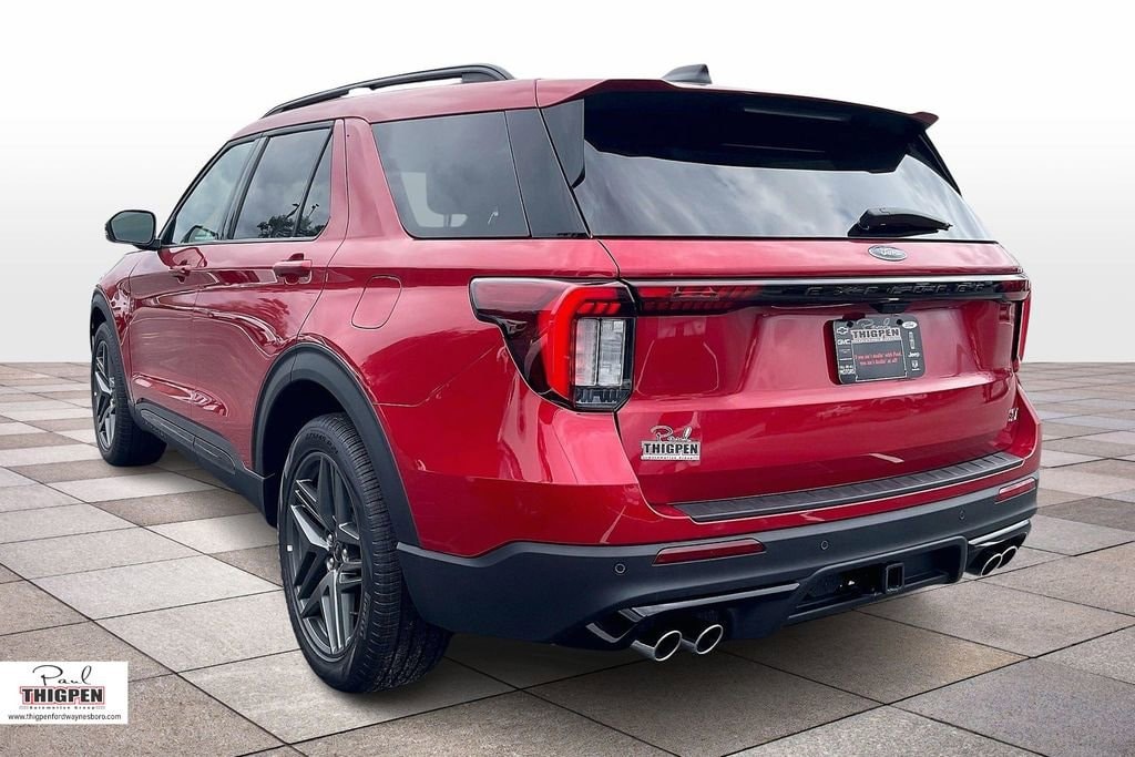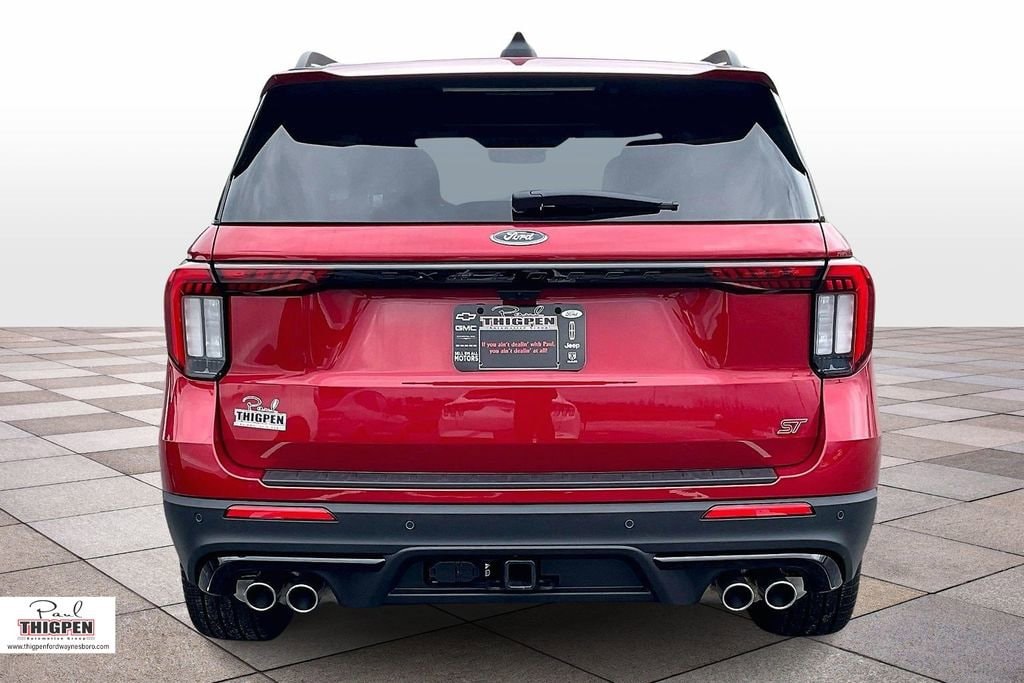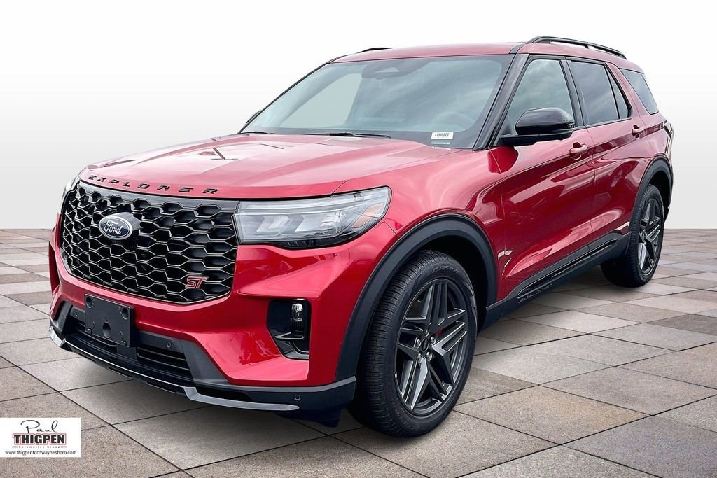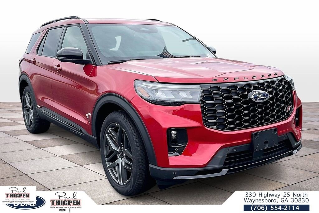 Rapid Red Metallic Tinted Clearcoat 2026 Ford Explorer ST 4WD 10-Speed Automatic 3.0L EcoBoost V6 4WD, 10 Speakers, 3rd row seats: bench, 4-Wheel Disc Brakes, ABS brakes, Air Conditioning, Alloy wheels, AM/FM radio: SiriusXM with 360L, Apple CarPlay/Android Auto, Auto High-beam Headlights, Auto-dimming door mirrors, Auto-dimming Rear-View mirror, Automatic temperature control, BlueCruise Equipped (1-Year + 90-Day Plan), Brake assist, Bumpers: body-color, Compass, Delay-off headlights, Driver door bin, Driver vanity mirror, Dual front impact airbags, Dual front side impact airbags, Electronic Stability Control, Emergency communication system: 911 Assist, Equipment Group 400A Standard Package, Exterior Parking Camera Rear, Ford Connectivity Package (one-Time Purchase - 7 Years), Four wheel independent suspension, Front anti-roll bar, Front Bucket Seats, Front Center Armrest, Front dual zone A/C, Front fog lights, Front License Plate Bracket, Front reading lights, Fully automatic headlights, Garage door transmitter, Heated door mirrors, Heated front seats, Heated rear seats, Heated steering wheel, Heated/Ventilated Miko Suede Captain's Chairs, Illuminated entry, Knee airbag, Leather steering wheel, Low tire pressure warning, Memory seat, Multicontour Seats with Front Active Motion, Navigation System, Occupant sensing airbag, Outside temperature display, Overhead airbag, Overhead console, Panic alarm, Panoramic Fixed Glass Roof with Power Shade, Passenger door bin, Passenger vanity mirror, Power door mirrors, Power driver seat, Power Liftgate, Power passenger seat, Power steering, Power windows, Radio: B&O Sound System by Bang & Olufsen, Radio: B&O Sound System by Bang and Olufsen, Rain sensing wipers, Rear air conditioning, Rear anti-roll bar, Rear reading lights, Rear window defroster, Rear window wiper, Remote Control Front Windows, Remote keyless entry, SecuriCode Keyless Entry Keypad, Security system, Speed control, Speed-sensing steering, Speed-Sensitive Wipers, Split folding rear seat, Spoiler, Sport steering wheel, Steering wheel mounted audio controls, Sun and Sound Package, Tachometer, Telescoping steering wheel, Tilt steering wheel, Traction control, Trip computer, Turn signal indicator mirrors, Variably intermittent wipers, Ventilated front seats, Wheels: 21" Magnetite-Painted Aluminum, 4WD.