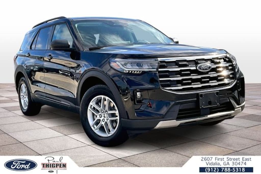 Agate Black Metallic 2026 Ford Explorer Active RWD 10-Speed Automatic 2.3L EcoBoost I-4 Vidalia Ford Lincoln 2607 E 1st St Vidalia, Georgia 30474 912-788-5318 Active Comfort Package (Front Fascia, Heated ActiveX Seating Material Captain's Chairs, Heated Steering Wheel, Remote Start System, and Second Row Hvac Controls), Equipment Group 200A Standard Package (AM/FM Stereo, Unique Cloth Heated Captain's Chairs, and Wheels: 18" Sparkle Silver-Painted Aluminum), Ford Connectivity Package (one-Time Purchase - 7 Years), 4D Sport Utility, 2.3L EcoBoost I-4, 10-Speed Automatic, RWD, Navigation System, Power Liftgate, 3rd row seats: bench, 4-Wheel Disc Brakes, 6 Speakers, ABS brakes, Air Conditioning, Alloy wheels, AM/FM radio: SiriusXM with 360L, Apple CarPlay/Android Auto, Auto High-beam Headlights, Automatic temperature control, Brake assist, Bumpers: body-color, Compass, Delay-off headlights, Driver door bin, Driver vanity mirror, Dual front impact airbags, Dual front side impact airbags, Electronic Stability Control, Emergency communication system: 911 Assist, Exterior Parking Camera Rear, Four wheel independent suspension, Front anti-roll bar, Front Bucket Seats, Front Center Armrest, Front dual zone A/C, Front reading lights, Fully automatic headlights, Heated door mirrors, Illuminated entry, Knee airbag, Low tire pressure warning, Occupant sensing airbag, Outside temperature display, Overhead airbag, Overhead console, Panic alarm, Passenger door bin, Passenger vanity mirror, Power driver seat, Power steering, Power windows, Rear air conditioning, Rear anti-roll bar, Rear reading lights, Rear window defroster, Rear window wiper, Remote keyless entry, Security system, Speed control, Speed-sensing steering, Speed-Sensitive Wipers, Split folding rear seat, Spoiler, Steering wheel mounted audio controls, Tachometer, Telescoping steering wheel, Tilt steering wheel, Traction control, Trip computer, and Unique Cloth Captain's Chairs. 12.3" HD Color Driver Cluster, 13.2" Color Touchscreen, 3rd Row Seating, 5G WiFi Hotspot Telematics, Android Auto, Apple Carplay, Auto LED Headlights, Backup Camera, Bluetooth w/ Streaming Audio, LED Fog Lights, Power Mirror Package, Power Package, Push Button Start, Remote Start, Tow Package, Trailer Package, 4D Sport Utility, 2.3L EcoBoost I-4, 10-Speed Automatic, RWD, Active Comfort Package, AM/FM Stereo, Equipment Group 200A Standard Package, Ford Connectivity Package (one-Time Purchase - 7 Years), Front Fascia, Heated ActiveX Seating Material Captain's Chairs, Heated Steering Wheel, Navigation System, Power Liftgate, Remote Start System, Second Row Hvac Controls, Unique Cloth Heated Captain's Chairs, Wheels: 18" Sparkle Silver-Painted Aluminum. Price includes: $3500 - Retail Customer Cash. Exp. 03/31/2026