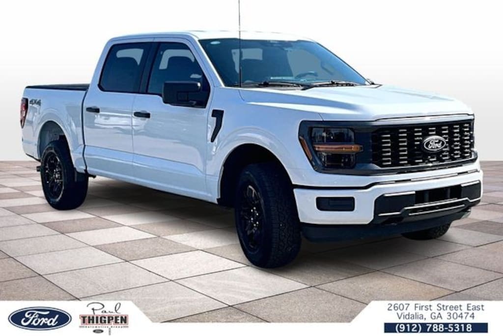 Oxford White 2026 Ford F-150 STX 4WD 10-Speed Automatic 2.7L V6 EcoBoost Vidalia Ford Lincoln 2607 E 1st St Vidalia, Georgia 30474 912-788-5318 Ford Connectivity Package (1-Year Included), GVWR: 6,650 lbs Payload Package, Internet access capable: 5G Modem - Ford Connectivity Package, 4WD, 3.55 Axle Ratio, 4-Wheel Disc Brakes, 6 Speakers, ABS brakes, Air Conditioning, Alloy wheels, AM/FM radio: SiriusXM with 360L, Auto High-beam Headlights, Brake assist, Bumpers: body-color, Compass, Delay-off headlights, Driver door bin, Dual front impact airbags, Dual front side impact airbags, Electronic Stability Control, Emergency communication system: SYNC 4 911 Assist, Front anti-roll bar, Front Bucket Seats, Front Center Armrest, Front reading lights, Front wheel independent suspension, Fully automatic headlights, Heated door mirrors, Illuminated entry, Low tire pressure warning, Occupant sensing airbag, Outside temperature display, Overhead airbag, Overhead console, Panic alarm, Passenger door bin, Passenger vanity mirror, Power door mirrors, Power steering, Power windows, Radio data system, Radio: AM/FM Stereo with SiriusXM 360L, Rear Parking Sensors, Rear step bumper, Rear window defroster, Remote keyless entry, Security system, Speed control, Split folding rear seat, Steering wheel mounted audio controls, SYNC 4 with Enhanced Voice Recognition, Tachometer, Telescoping steering wheel, Tilt steering wheel, Traction control, Trip computer, Unique Sport Cloth 40/Console/40 Front-Seats, Variably intermittent wipers, and Wheels: 18" Gloss Black. 4WD.