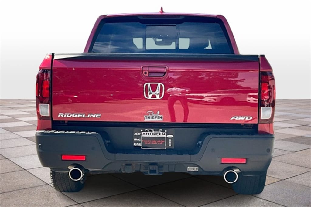 Radiant Red Metallic II 2023 Honda Ridgeline RTL-E AWD 3.5L V6 SOHC i-VTEC 24V Aluminum Wheels, Black w/Leather Seat Trim.
